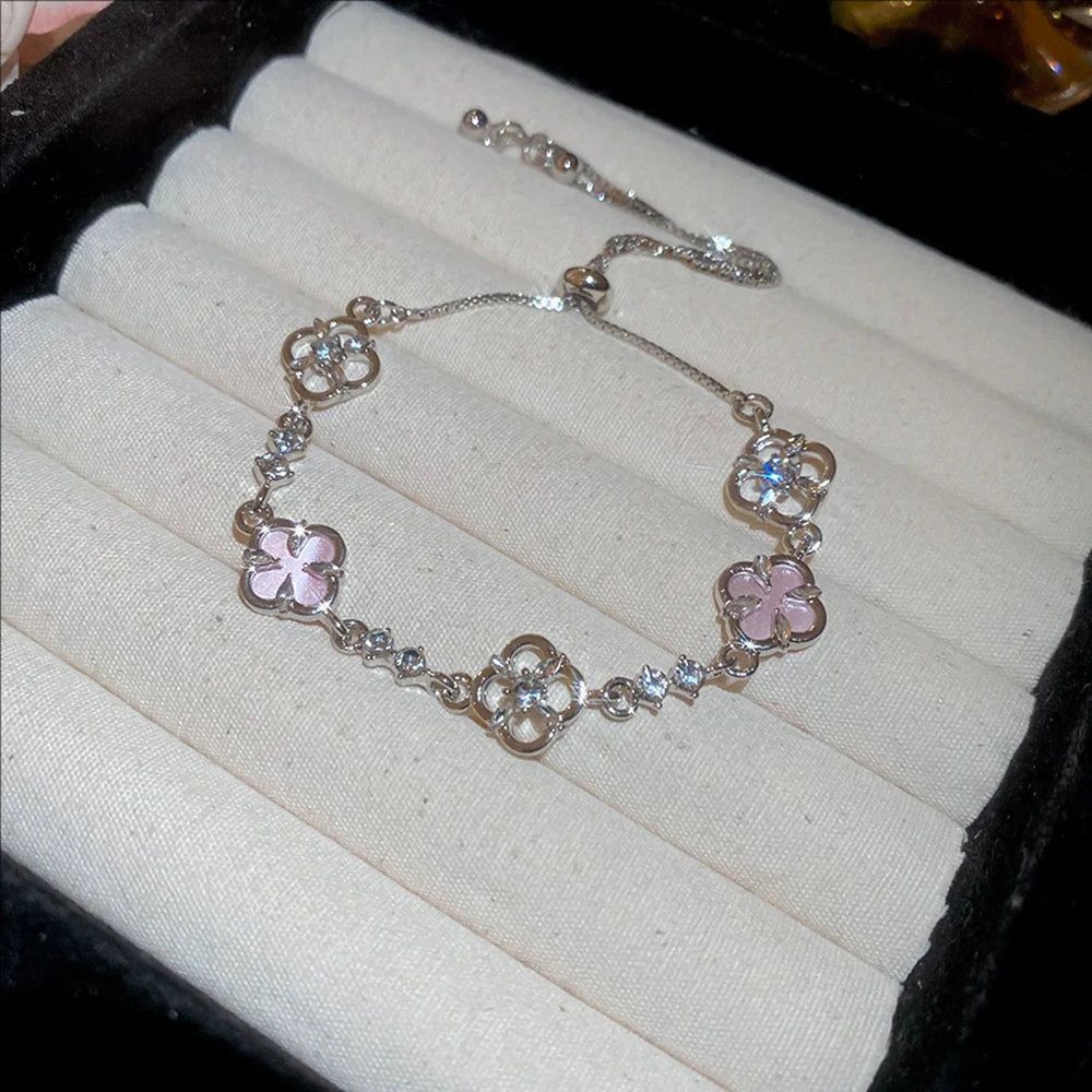 Crystal Flower Adjustable Bracelet Fashionable And Exquisite Wristband Light Luxury High-end Elegant Jewelry