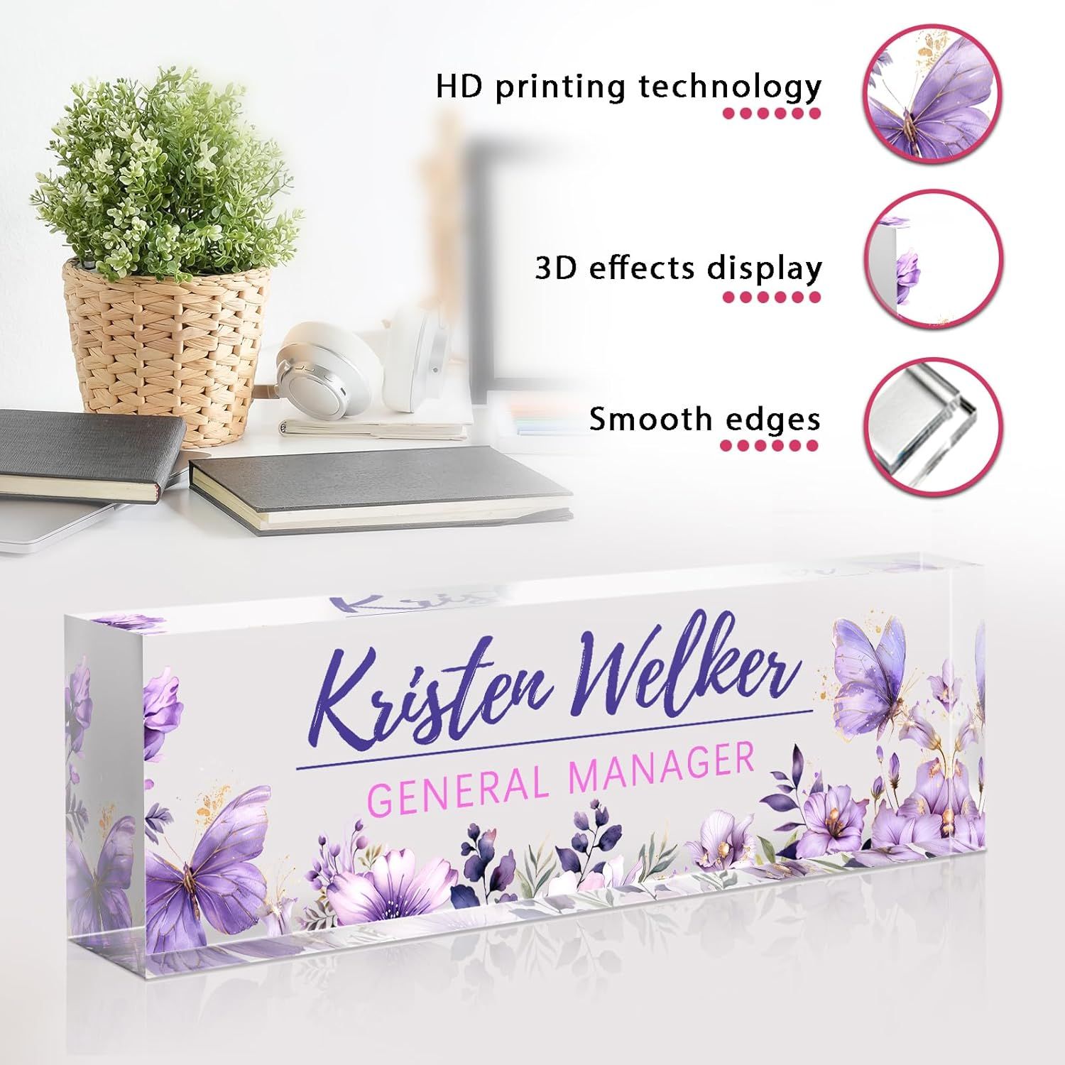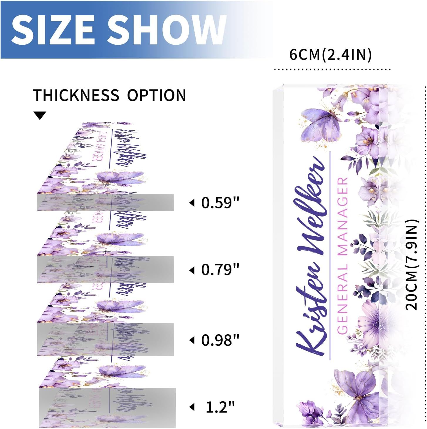 🥰 【Thicker Acrylic: .79-1.18 inches】We no longer sell the unstable .59-inch nameplates. Choose from thicker, high-quality acrylic with advanced UV printing and engraving.