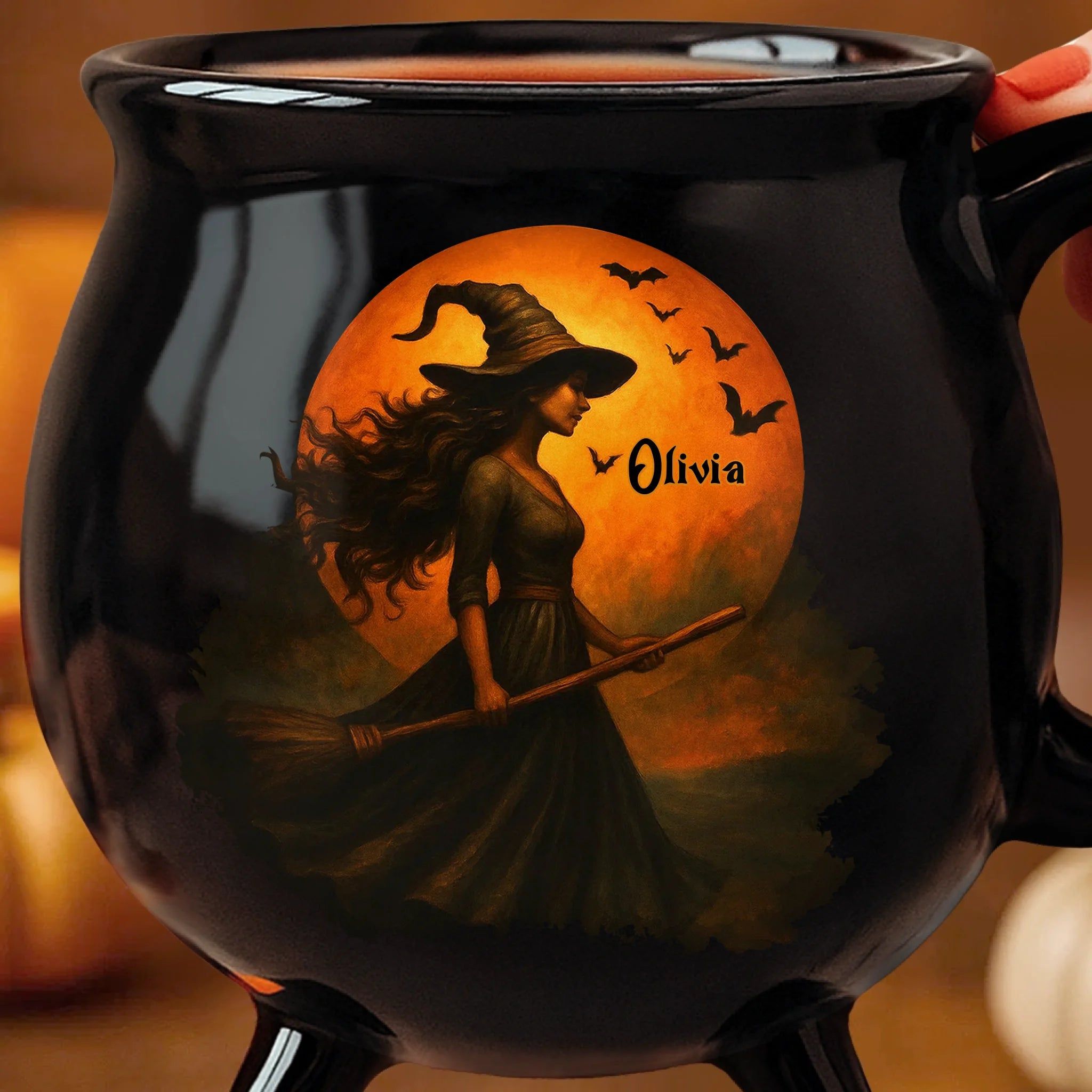 Custom Witch Cauldron Mug - Personalized Halloween Birthday Gifts For Besties, Sisters, BFF, Family, Yourself - Witching You a Wicked Brew