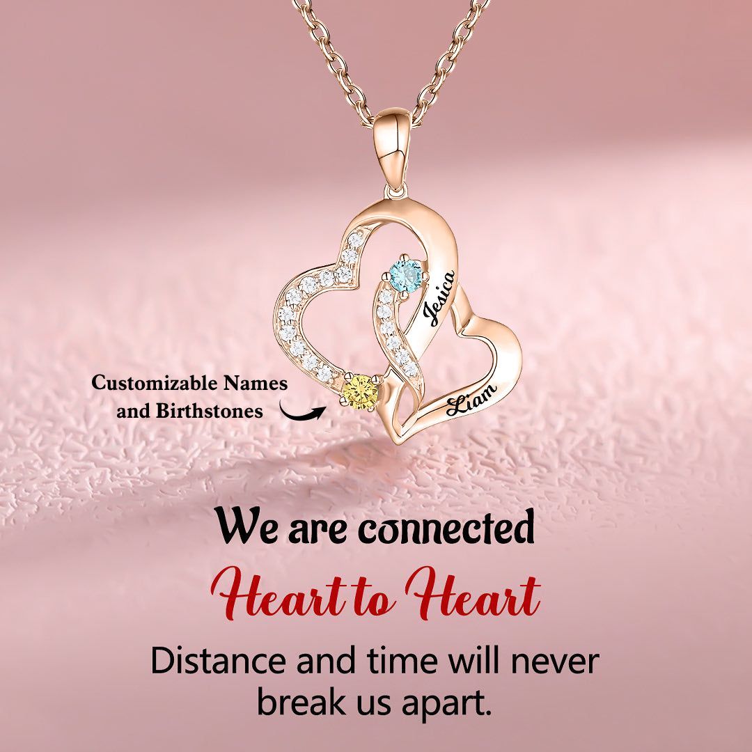 Customize with your names and birthstones. Each time light dances across the pendant, it rekindles those wordless moments of understanding, making your timeless love shine even brighter.